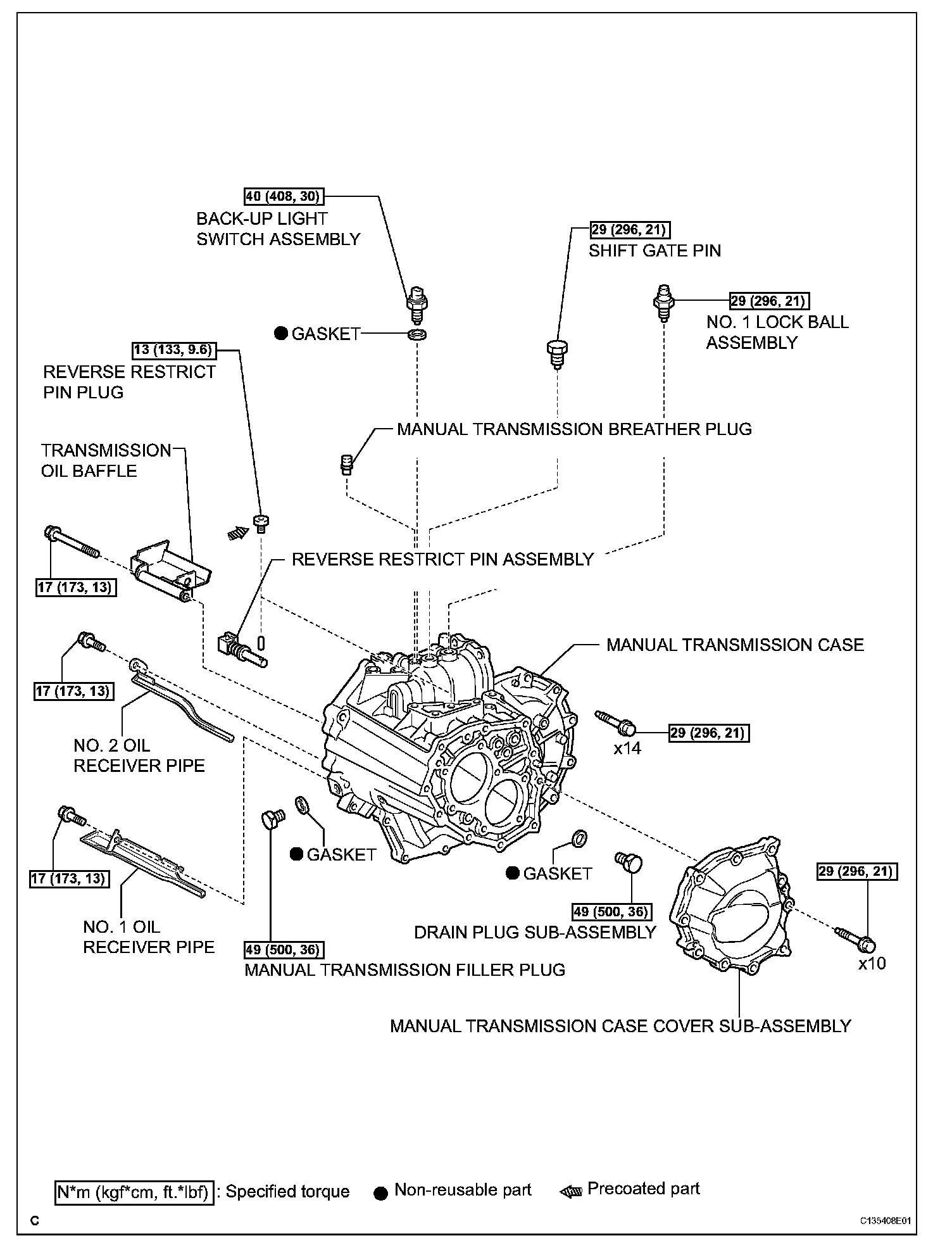 (b) Remove the 14 bolts from the manual transmission case.