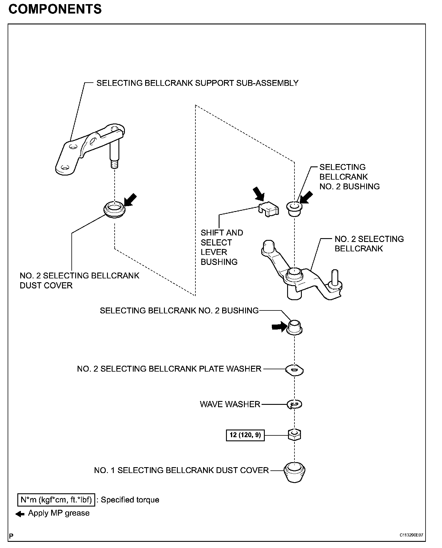 (a) Coat the 2 selecting bellcrank No. 2 bushings with MP grease and install them to the No. 2 selecting bellcrank.