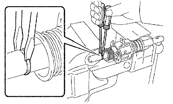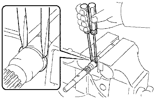 (c) Using a brass bar and a hammer, install the select seat snap ring to the shift and select lever shaft.