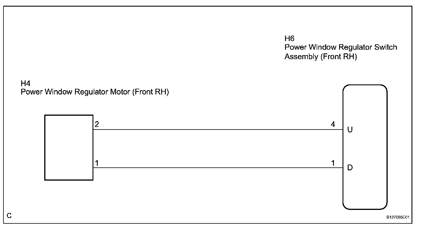 This circuit transmits signals from the power window regulator switch assembly (Front RH) to the power window regulator motor (Front RH).