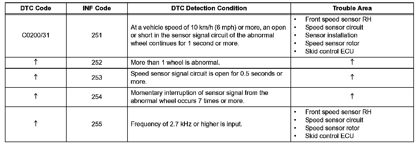 DTC C0200/31 Front Speed Sensor RH CircuitDESCRIPTION