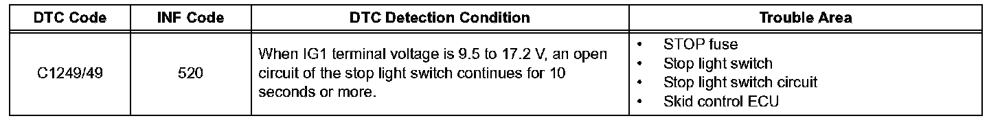 DTC C1249/49 Open in Stop Light Switch CircuitDESCRIPTION