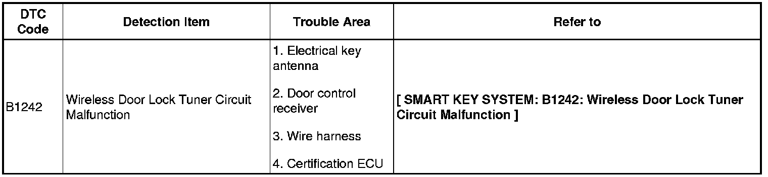 DOOR LOCK: SMART KEY SYSTEM: DIAGNOSTIC TROUBLE CODE CHART