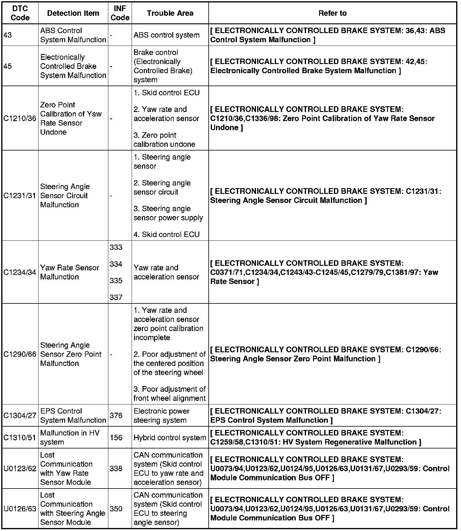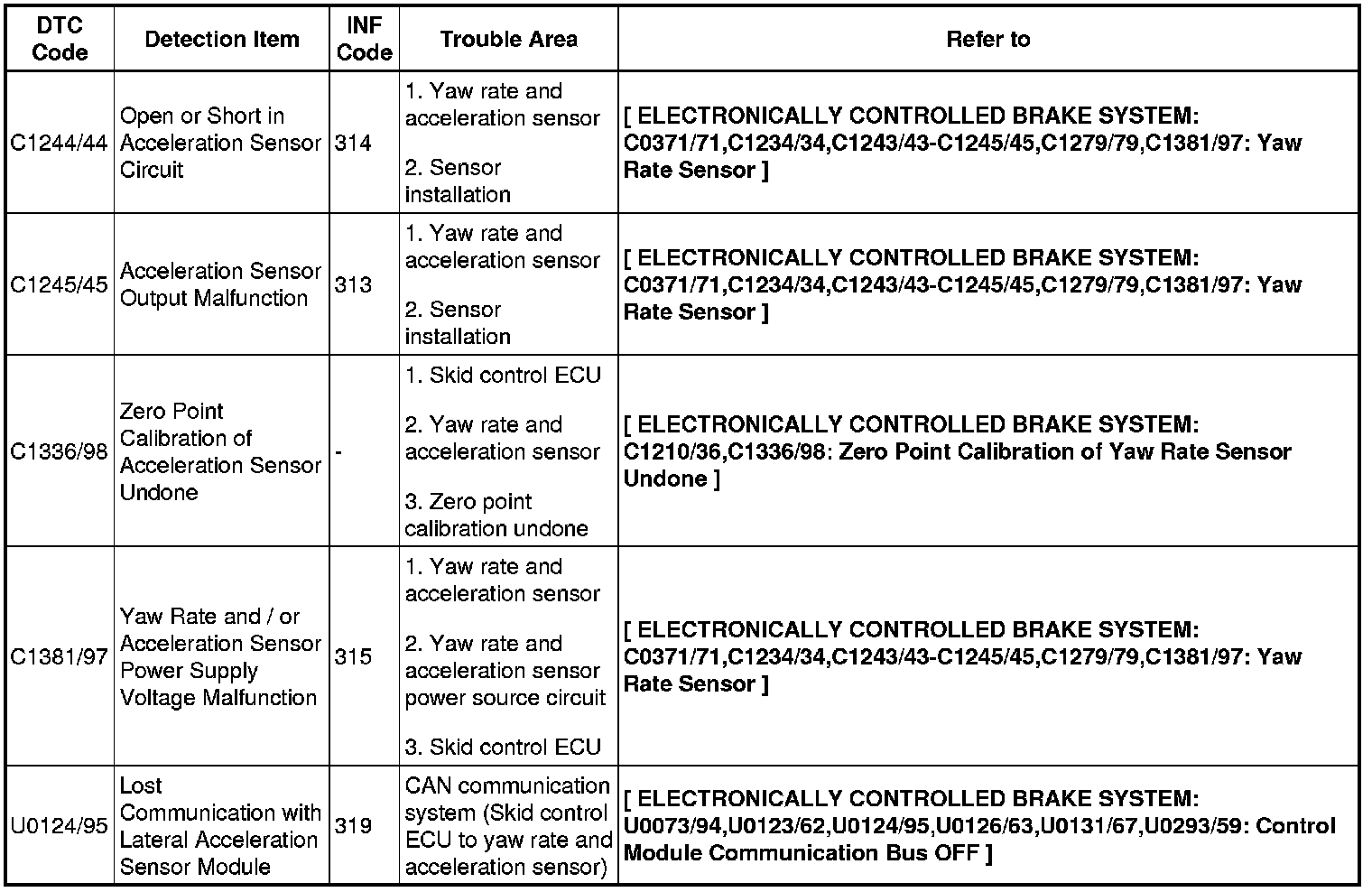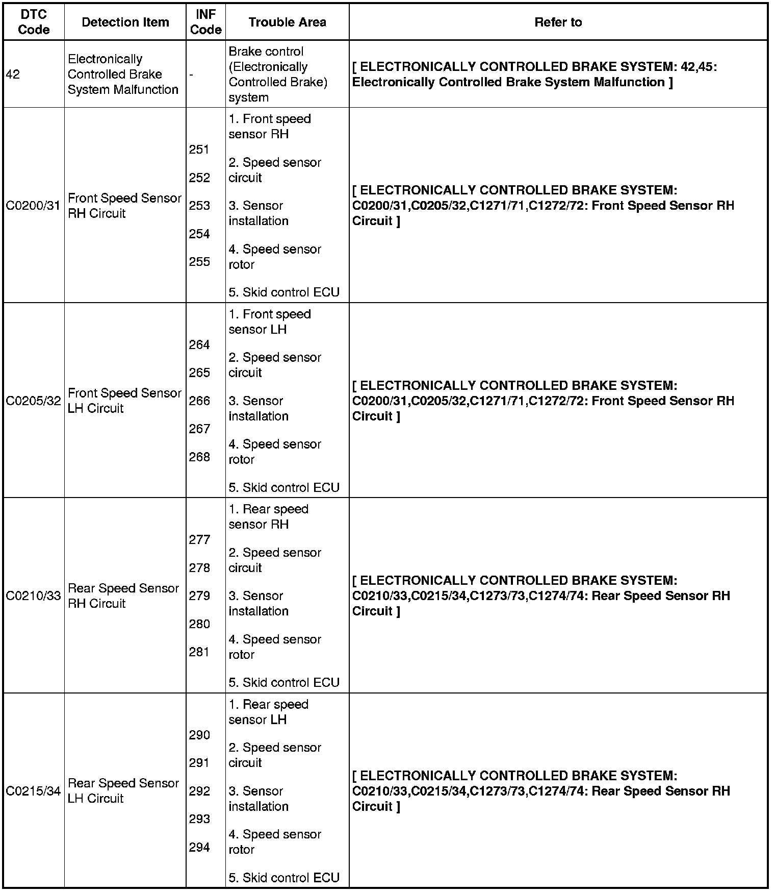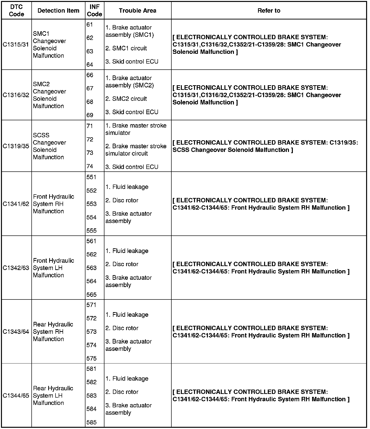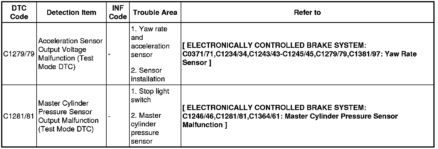 BRAKE CONTROL: ELECTRONICALLY CONTROLLED BRAKE SYSTEM: DIAGNOSTIC TROUBLE CODE CHART