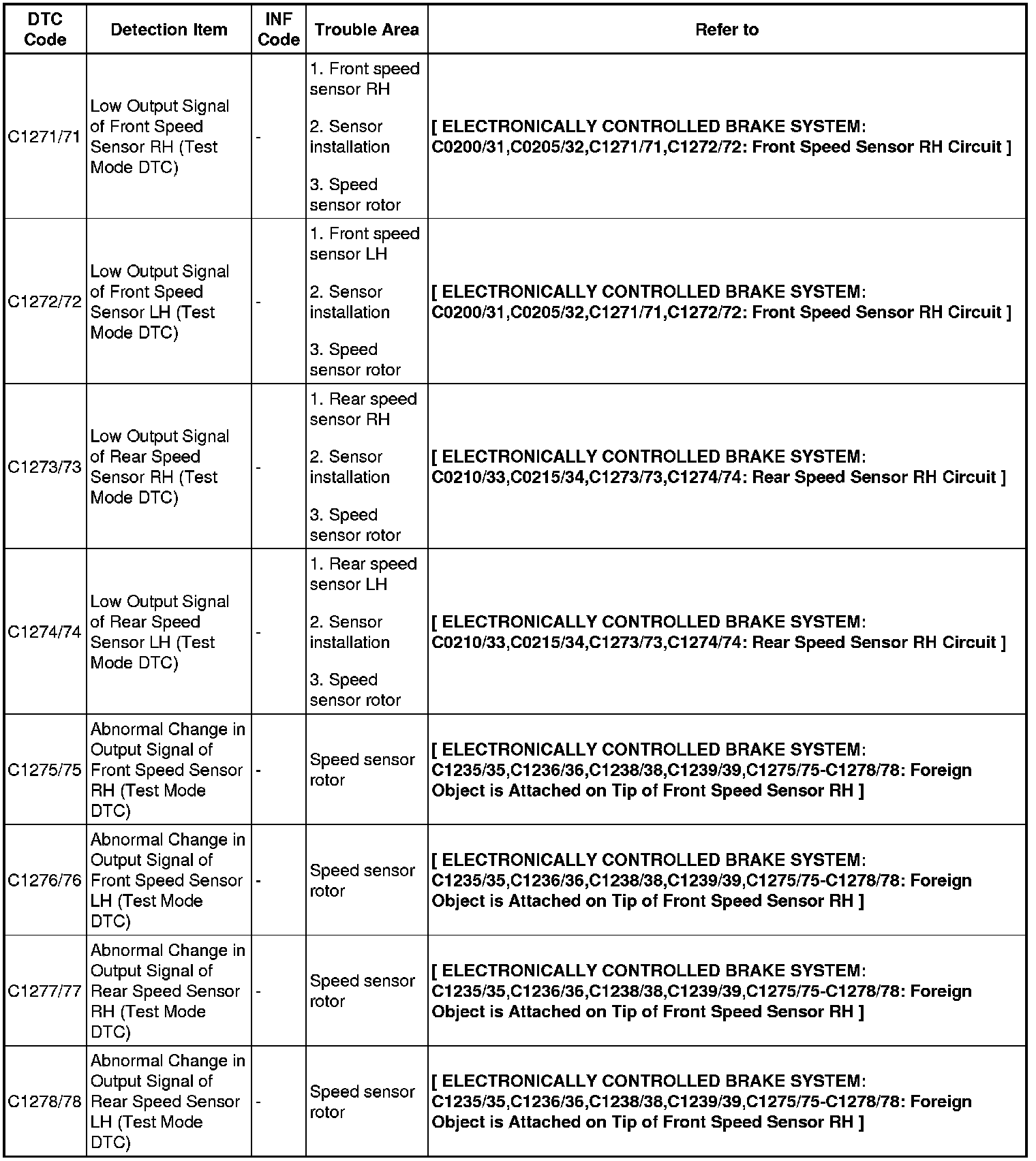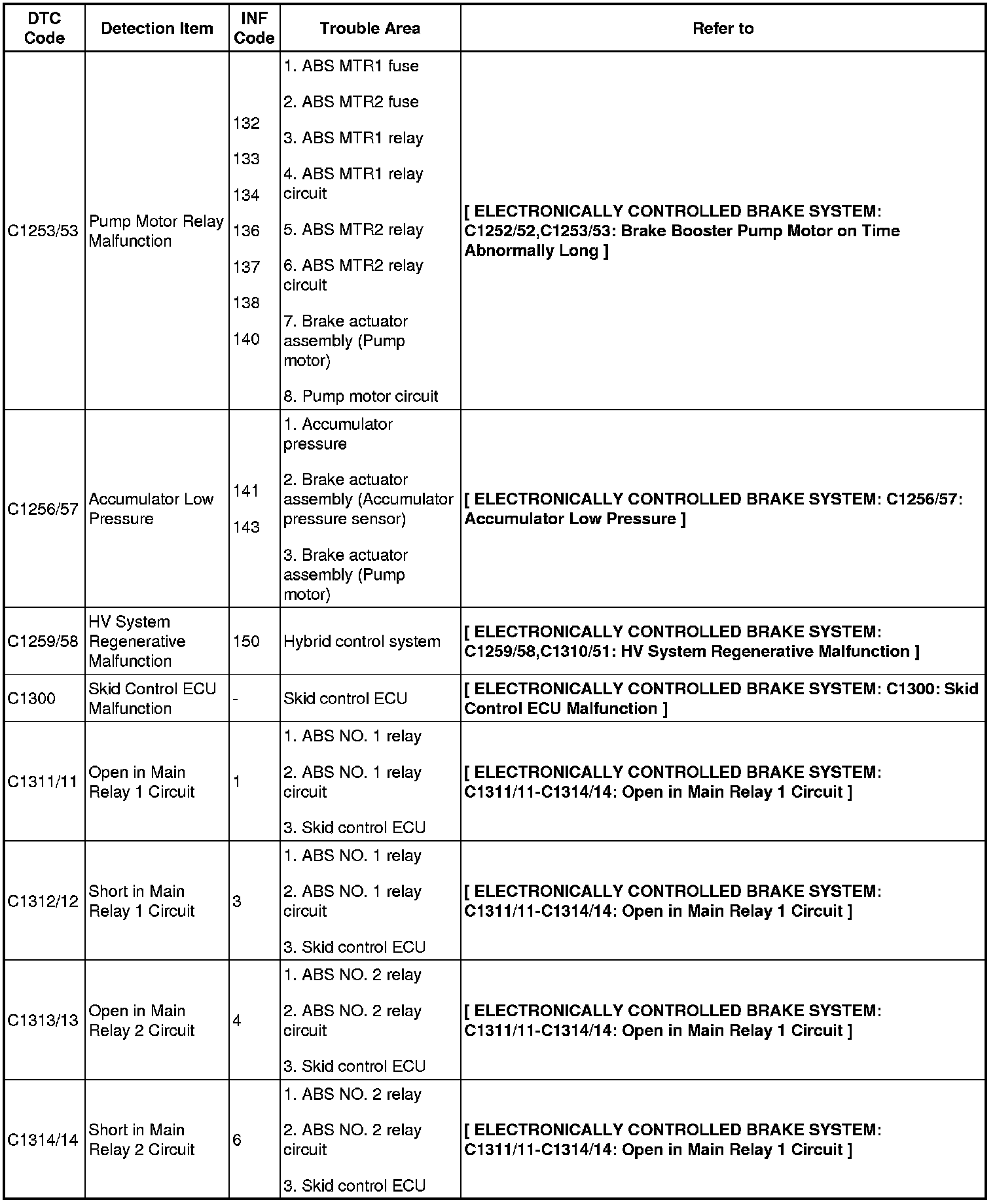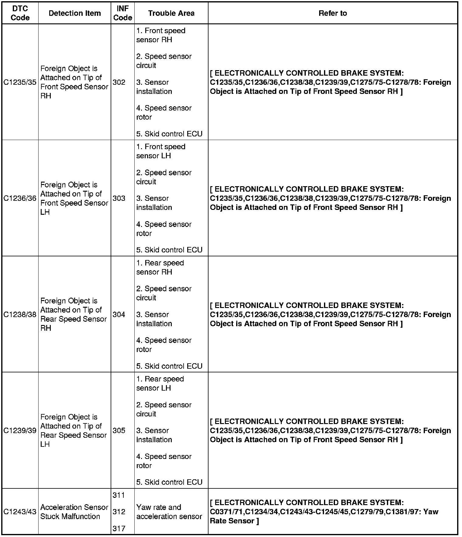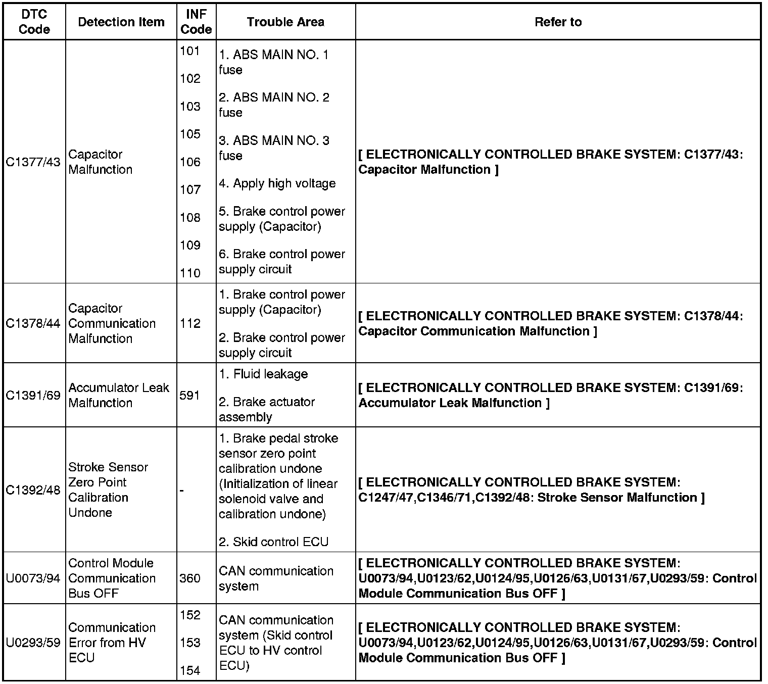BRAKE CONTROL: ELECTRONICALLY CONTROLLED BRAKE SYSTEM: DIAGNOSTIC TROUBLE CODE CHART