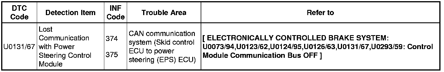 - When U0073/94, U0123/62, U0124/95, U0126/63, U0131/67, or U0293/59 is output, inspect and repair the trouble areas indicated by these codes first.