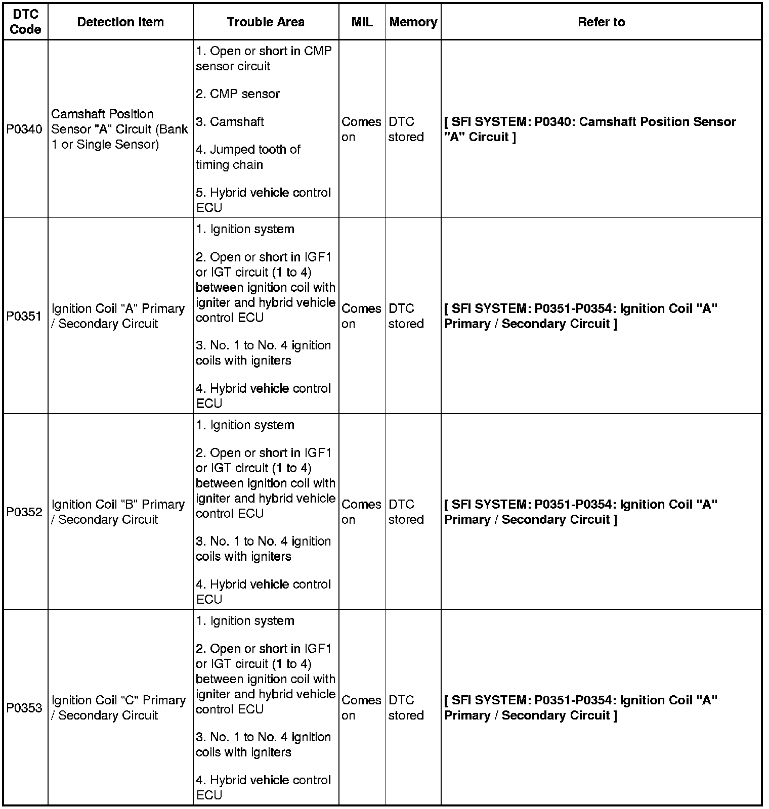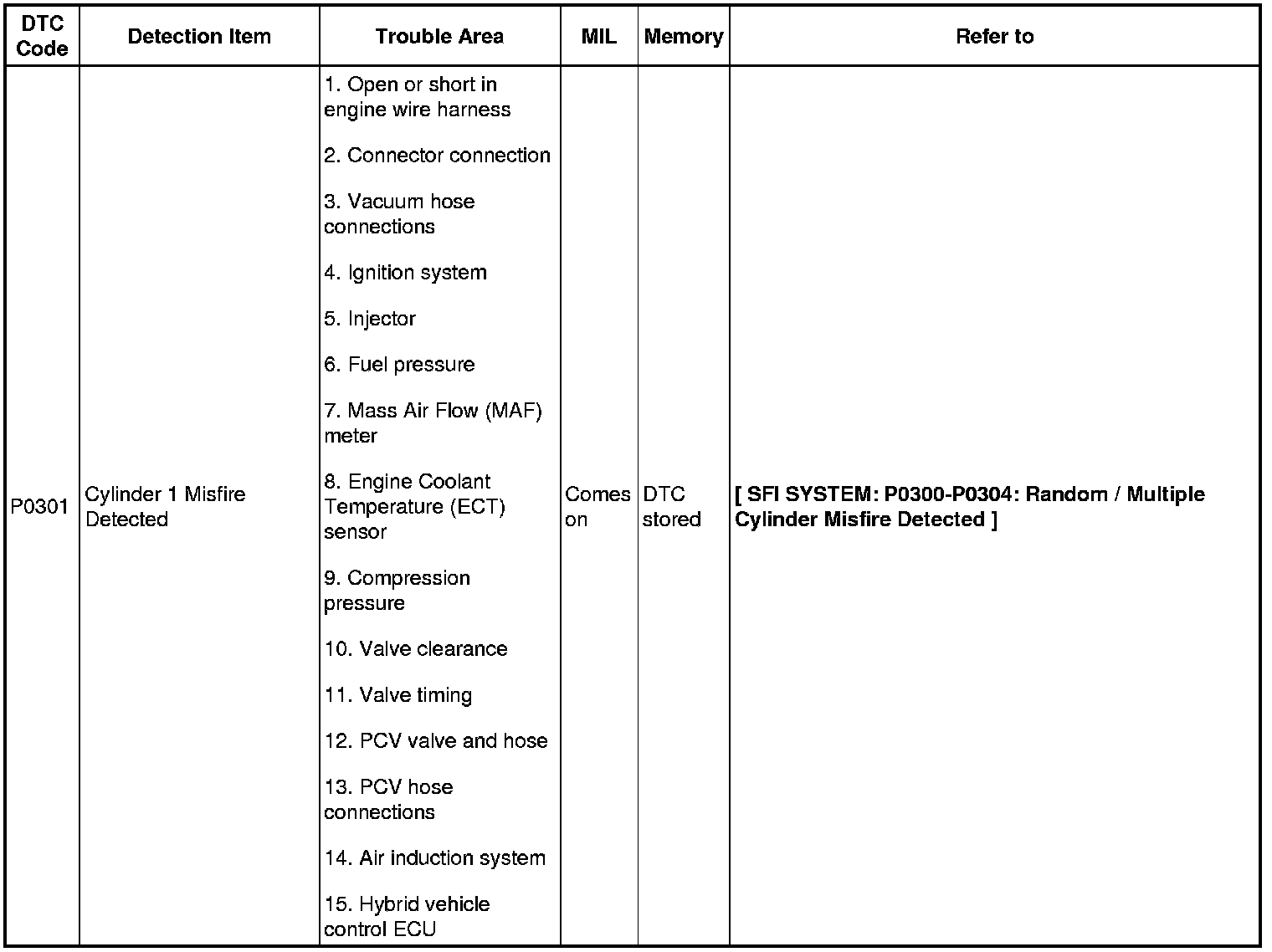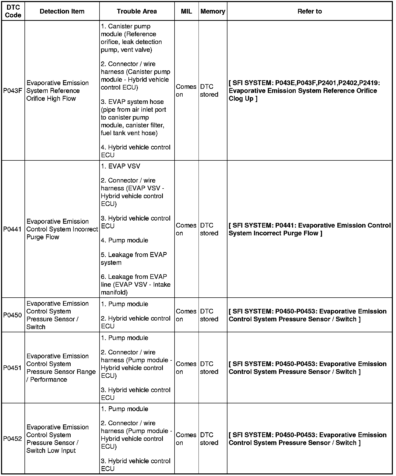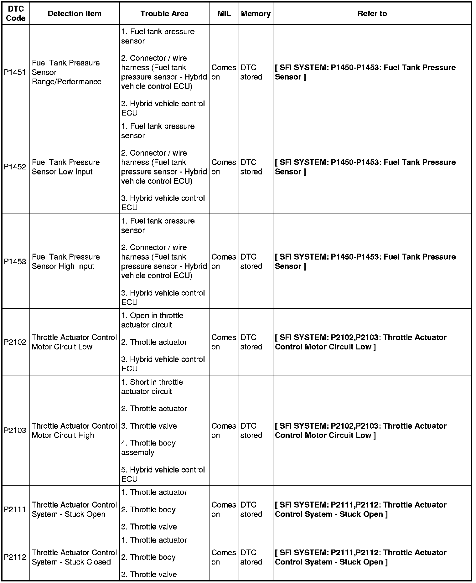 2AZ-FXE ENGINE CONTROL SYSTEM: SFI SYSTEM: DIAGNOSTIC TROUBLE CODE CHART