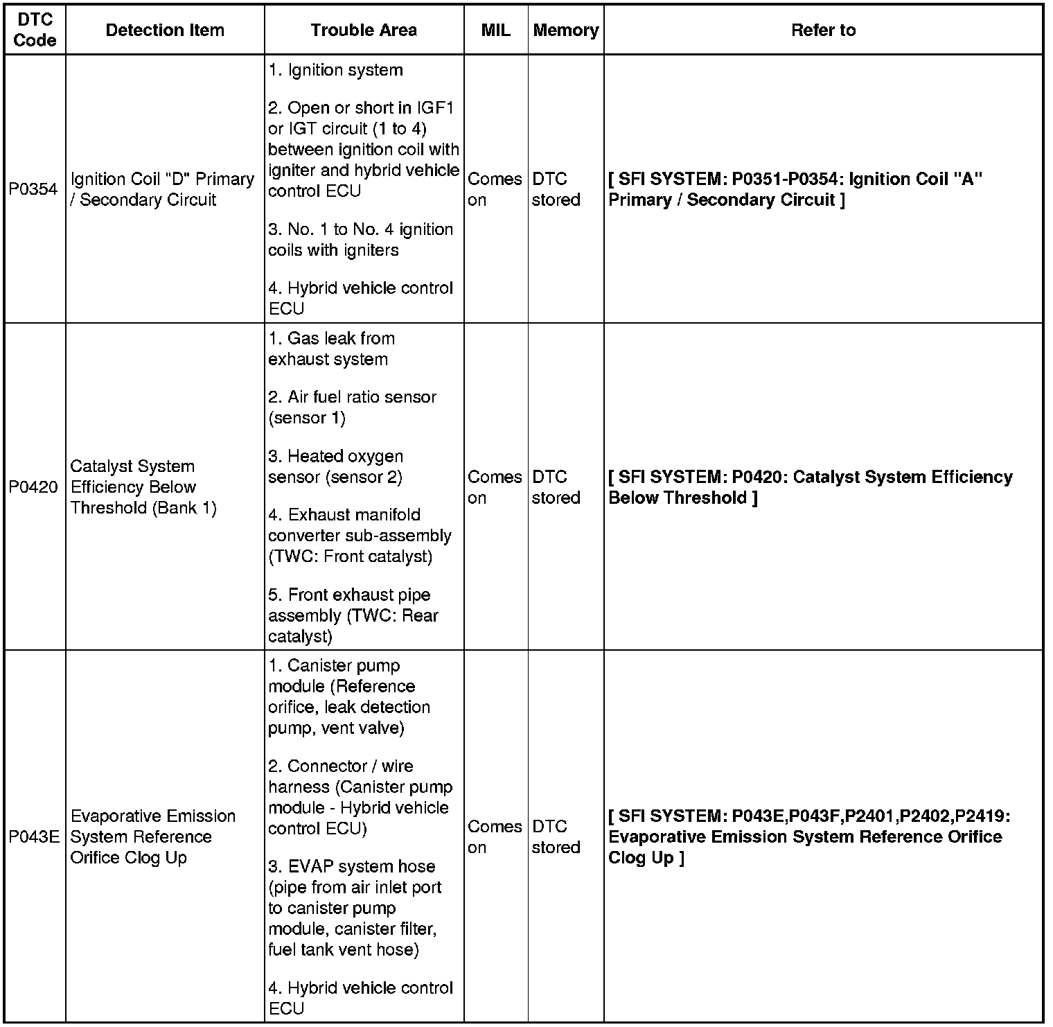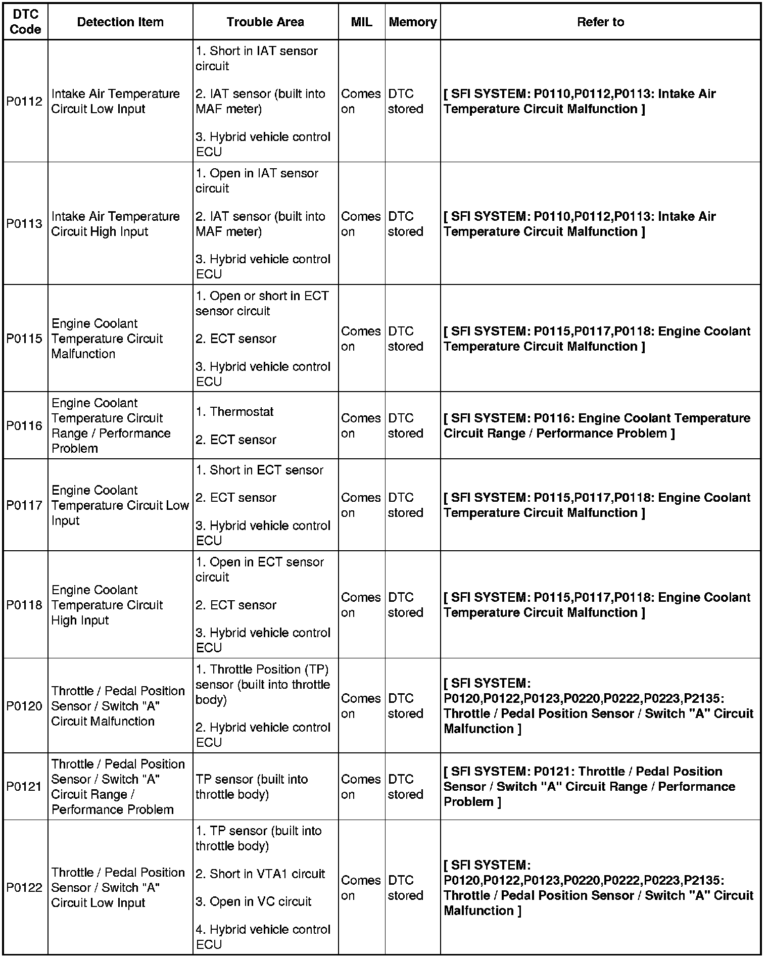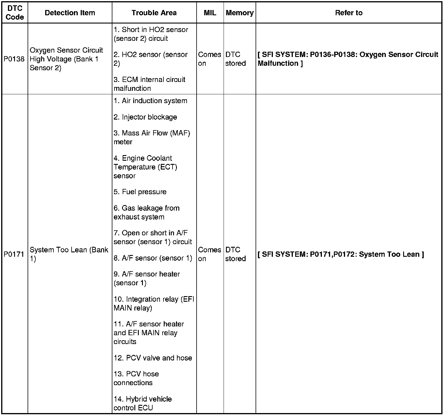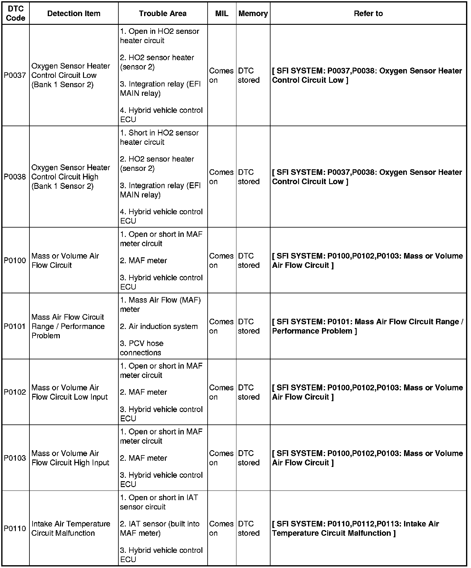 2AZ-FXE ENGINE CONTROL SYSTEM: SFI SYSTEM: DIAGNOSTIC TROUBLE CODE CHART