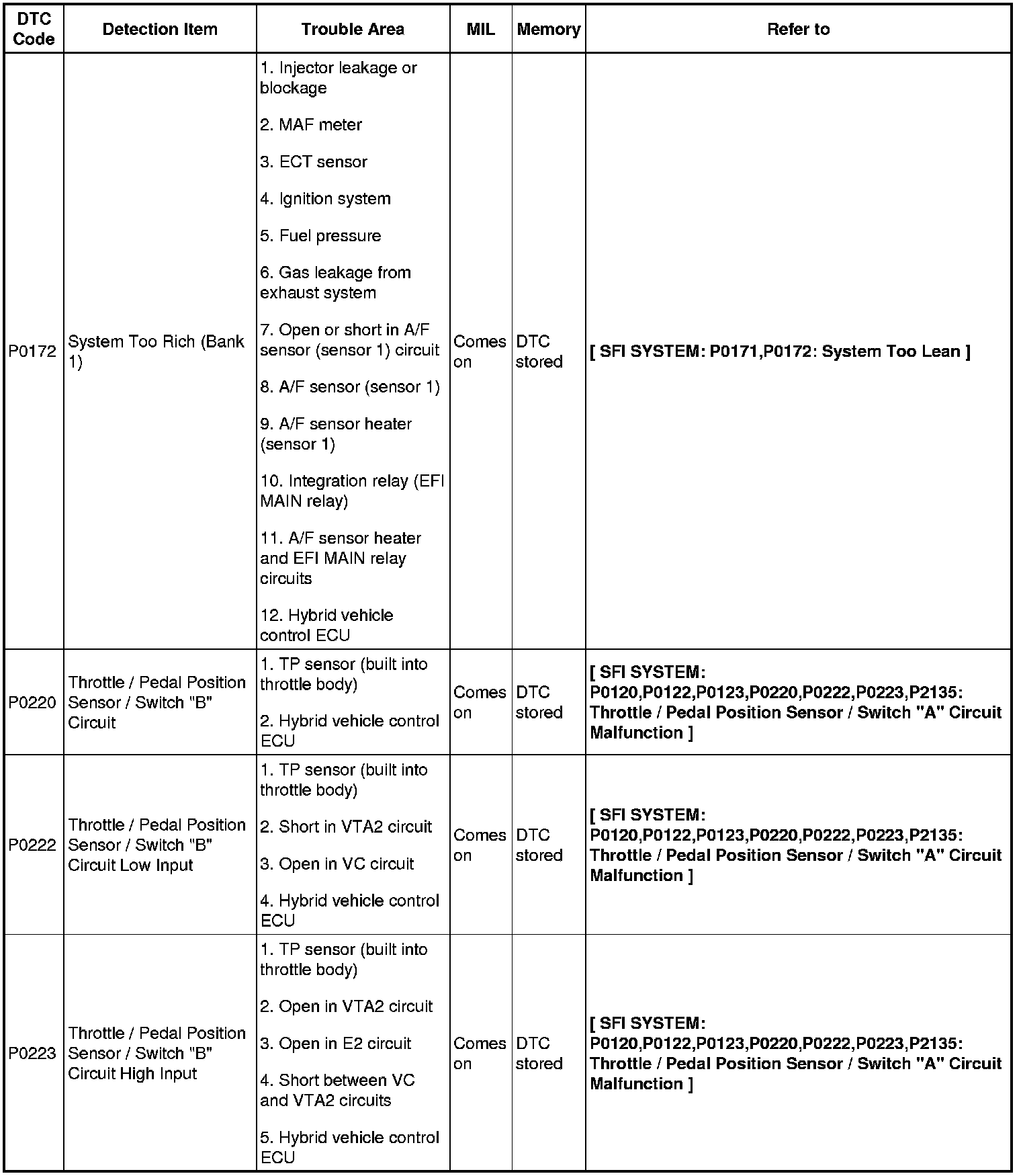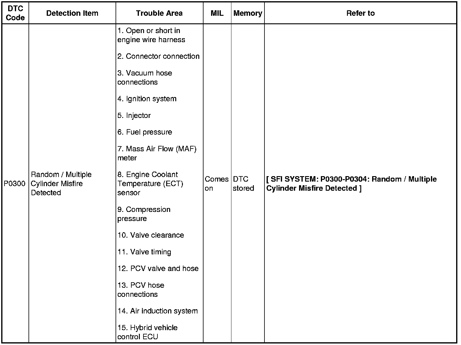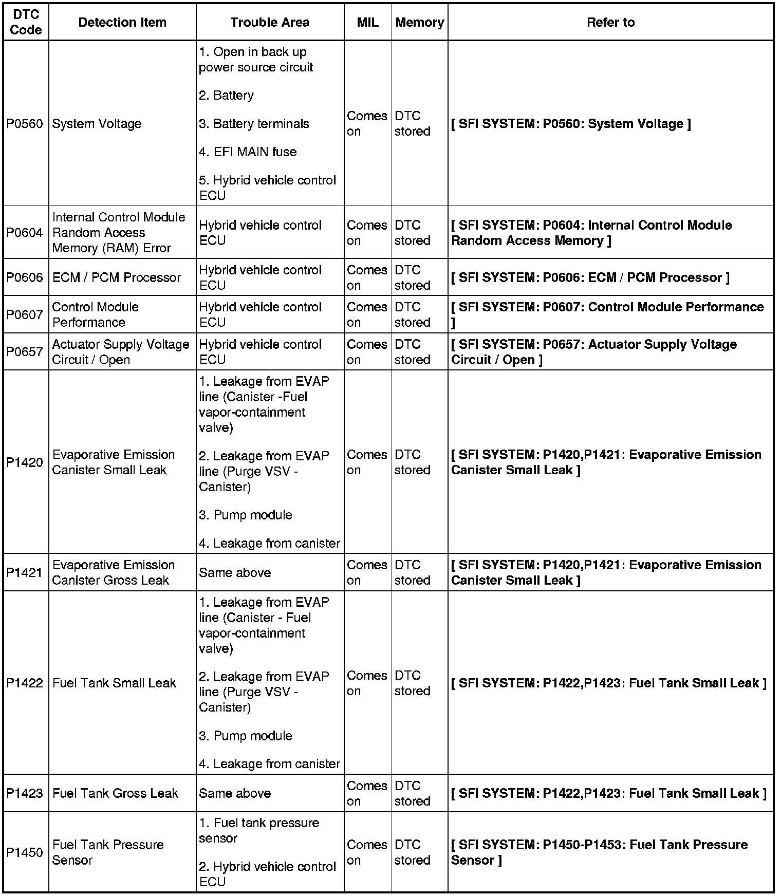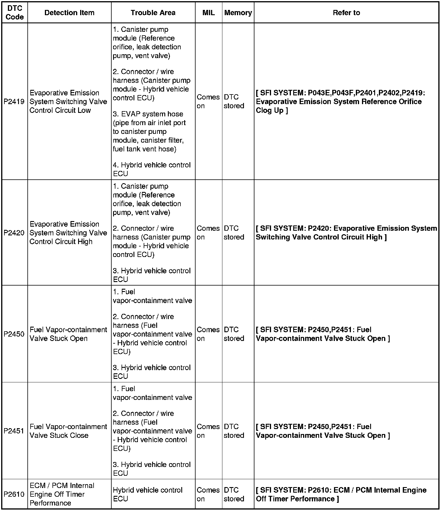 2AZ-FXE ENGINE CONTROL SYSTEM: SFI SYSTEM: DIAGNOSTIC TROUBLE CODE CHART