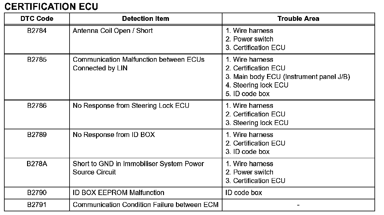 DIAGNOSTIC TROUBLE CODE CHARTB2784-B2791: