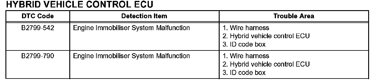 HINT: The DTCs for the engine immobilizer system are specified above. If other codes are output, check the DTC chart for the hybrid control system.