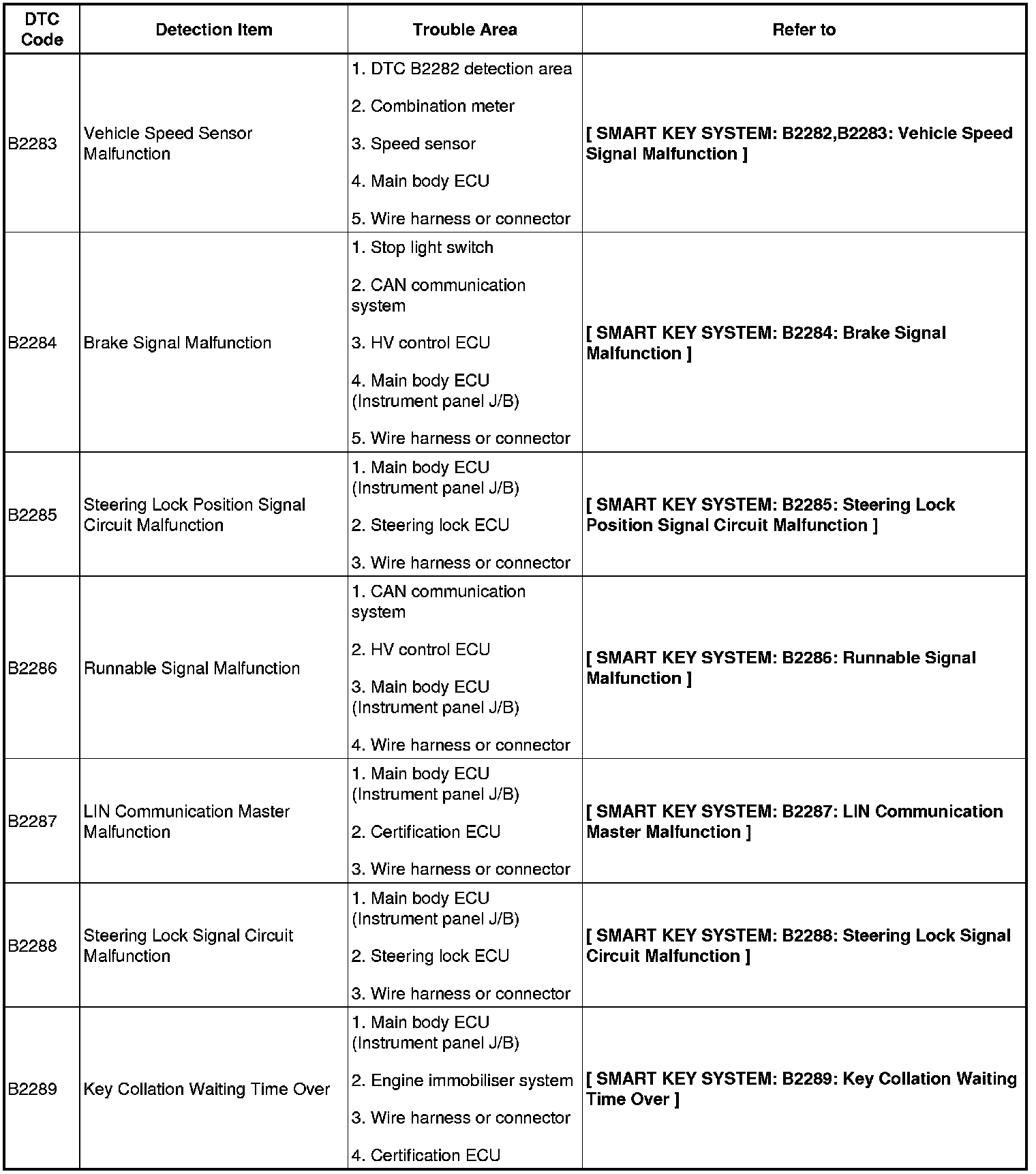 2AZ-FXE STARTING: SMART KEY SYSTEM: DIAGNOSTIC TROUBLE CODE CHART