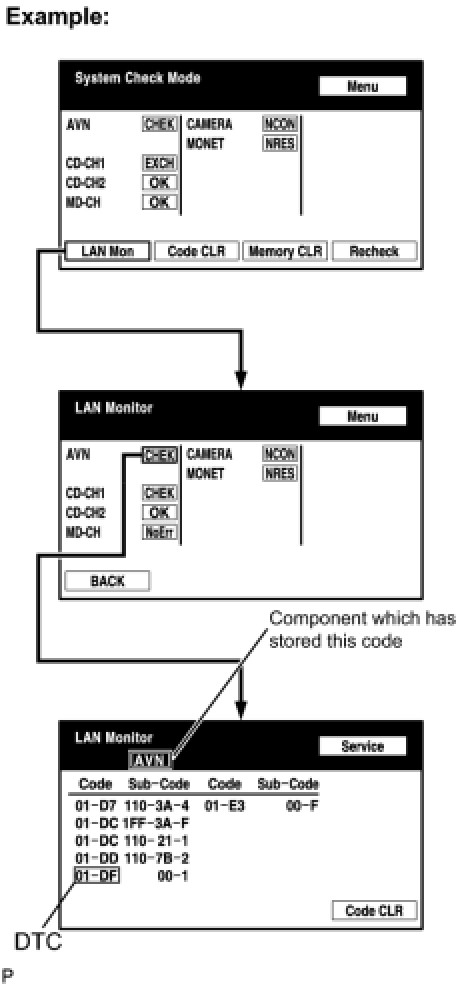 (a) Referring to the AVC-LAN wiring diagram below, check the AVC-LAN circuit between the radio and navigation assembly and the component which has stored this code.