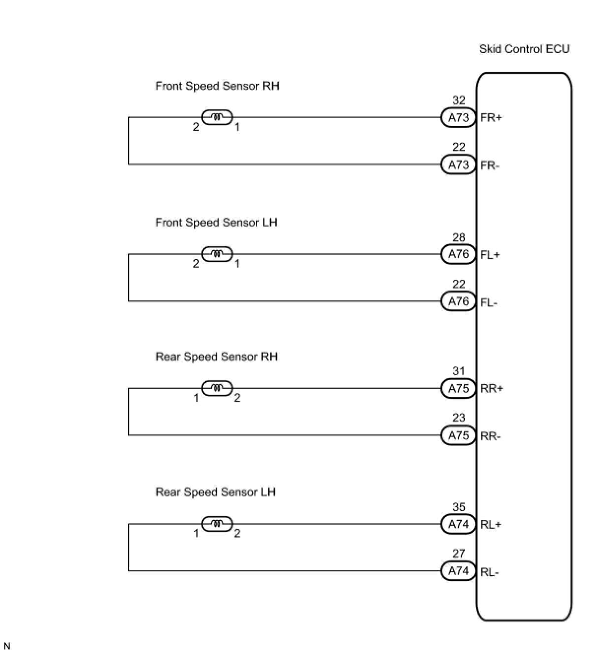 5. CHECK HARNESS AND CONNECTOR (SKID CONTROL ECU - EACH SPEED SENSOR)