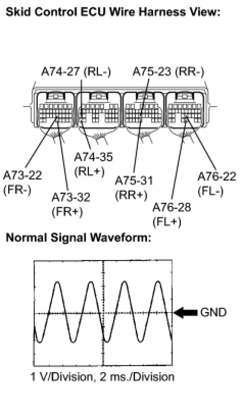 (a) Connect the oscilloscope to each speed sensor terminal of the skid control ECU.