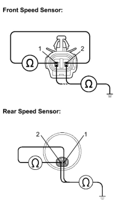 Since the frequency of this AC voltage changes in direct proportion to the speed of the rotor, the frequency is used by the ECU to detect the speed of each wheel.