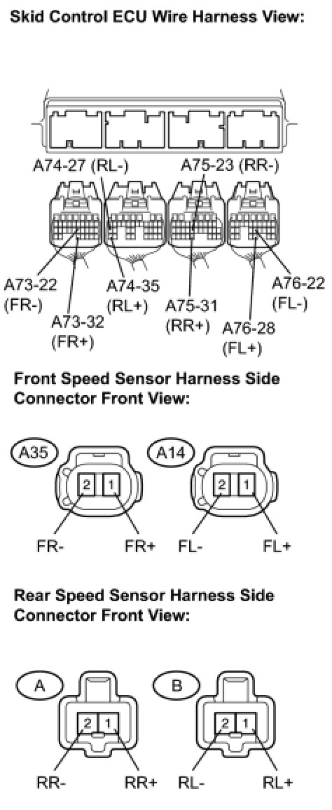 (b) Reconnect the skid control ECU connectors and the speed sensor connector.