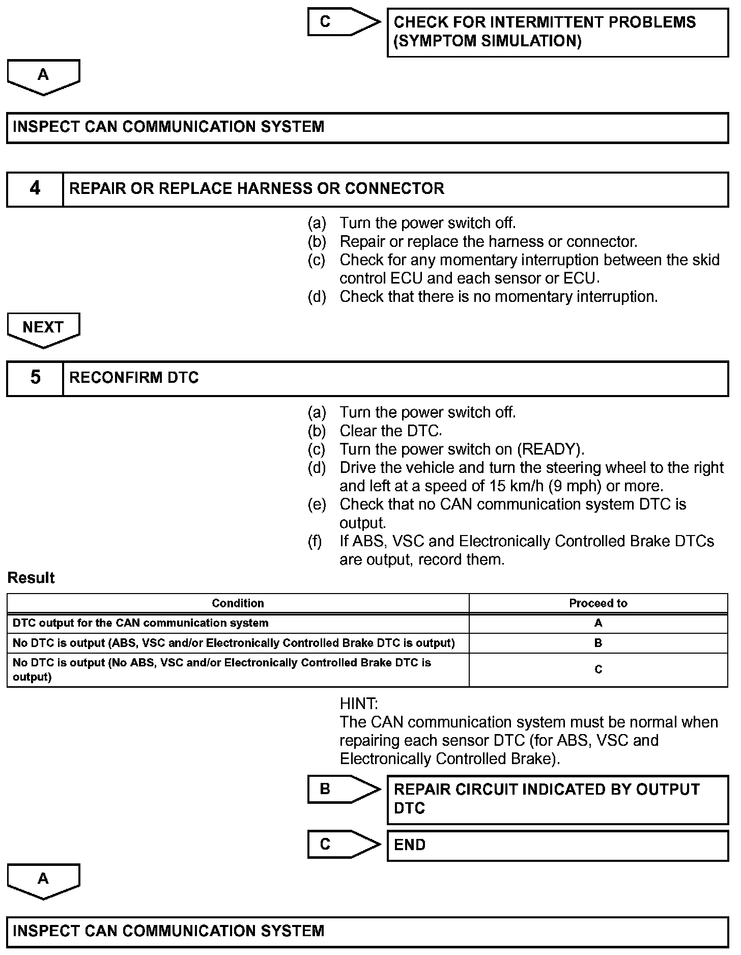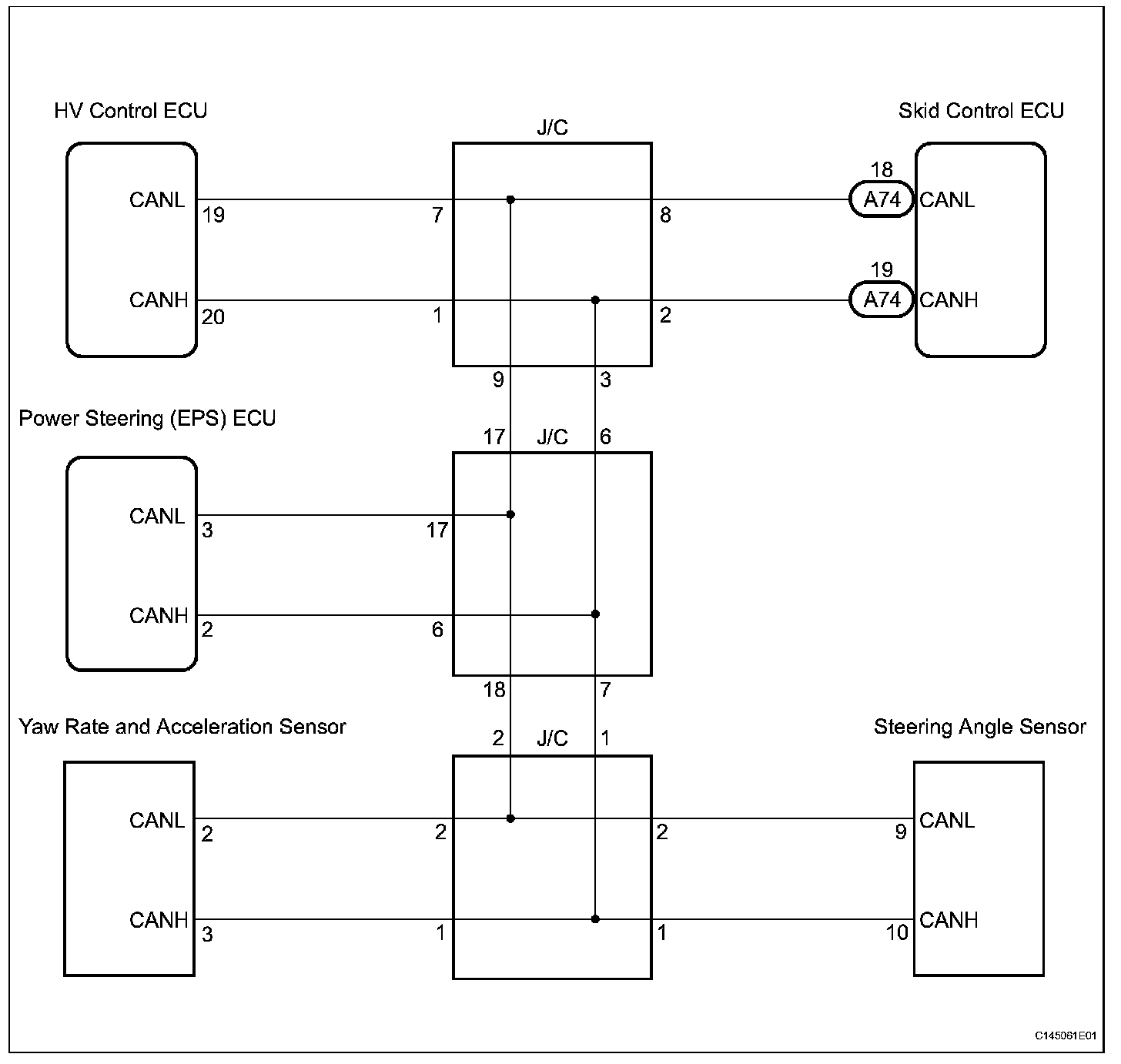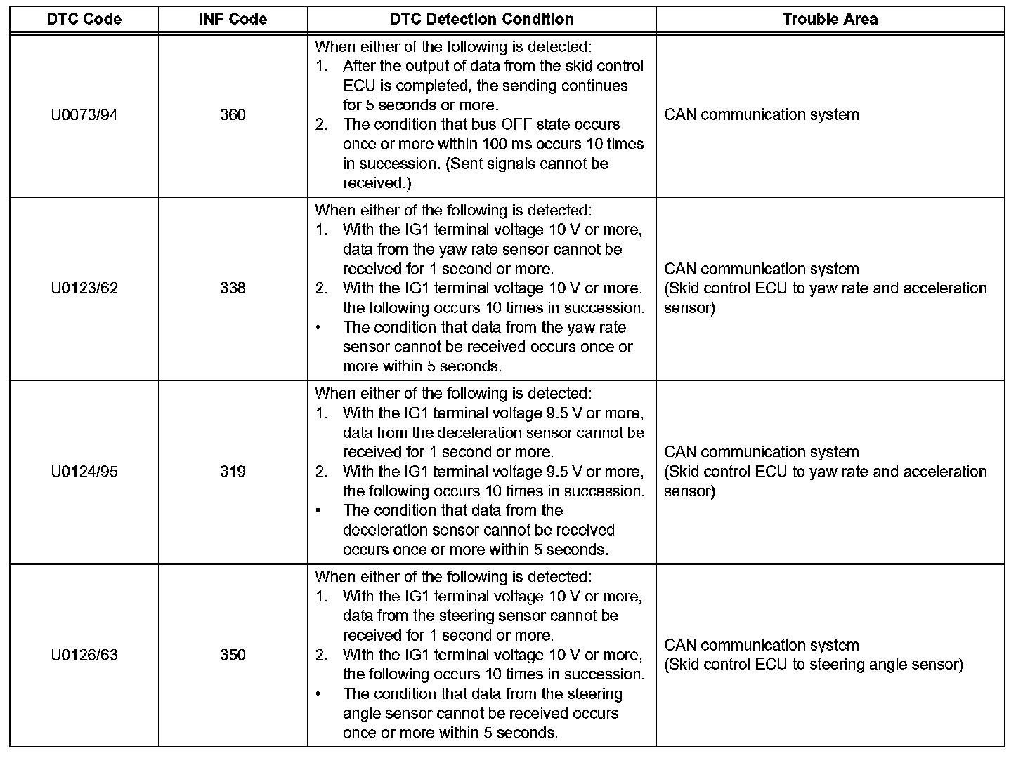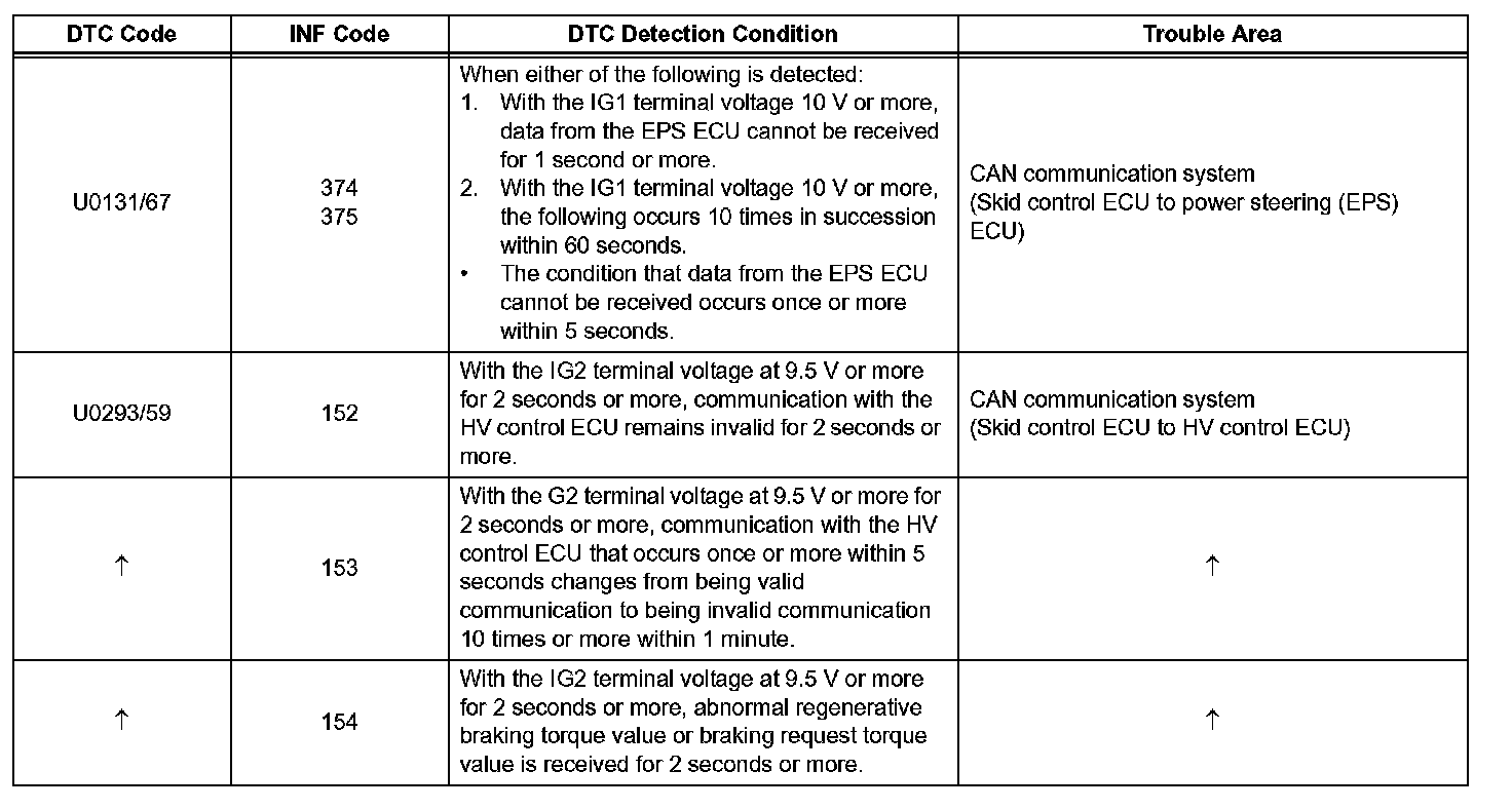 The skid control ECU receives the signals from the HV control ECU, power steering (EPS) ECU, steering angle sensor, and yaw rate and acceleration sensor via the CAN communication system.