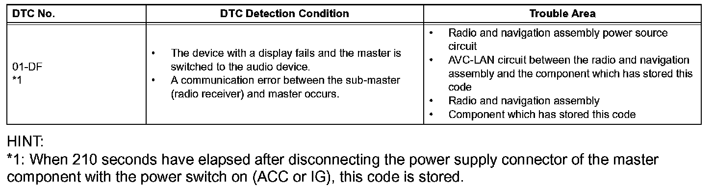 DTC 01-DF Master ErrorDTC Detection Condition: