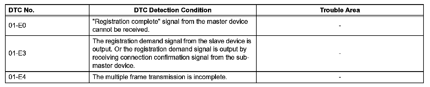 DTC 01-E0 Registration Complete Indication ErrorDTC 01-E3 Registration Demand Transmission
