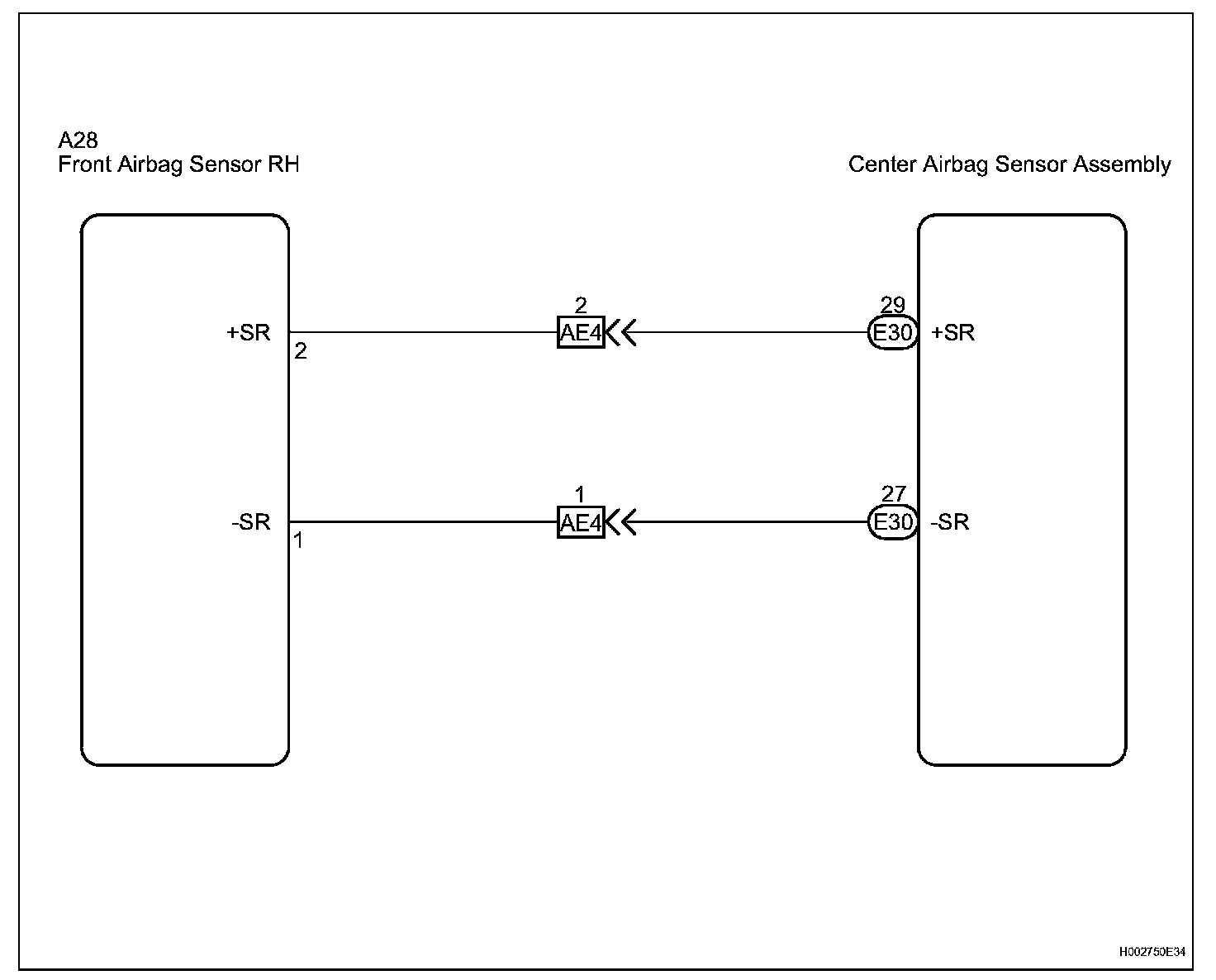 The front airbag sensor RH circuit consists of the center airbag sensor assembly and front airbag sensor RH.