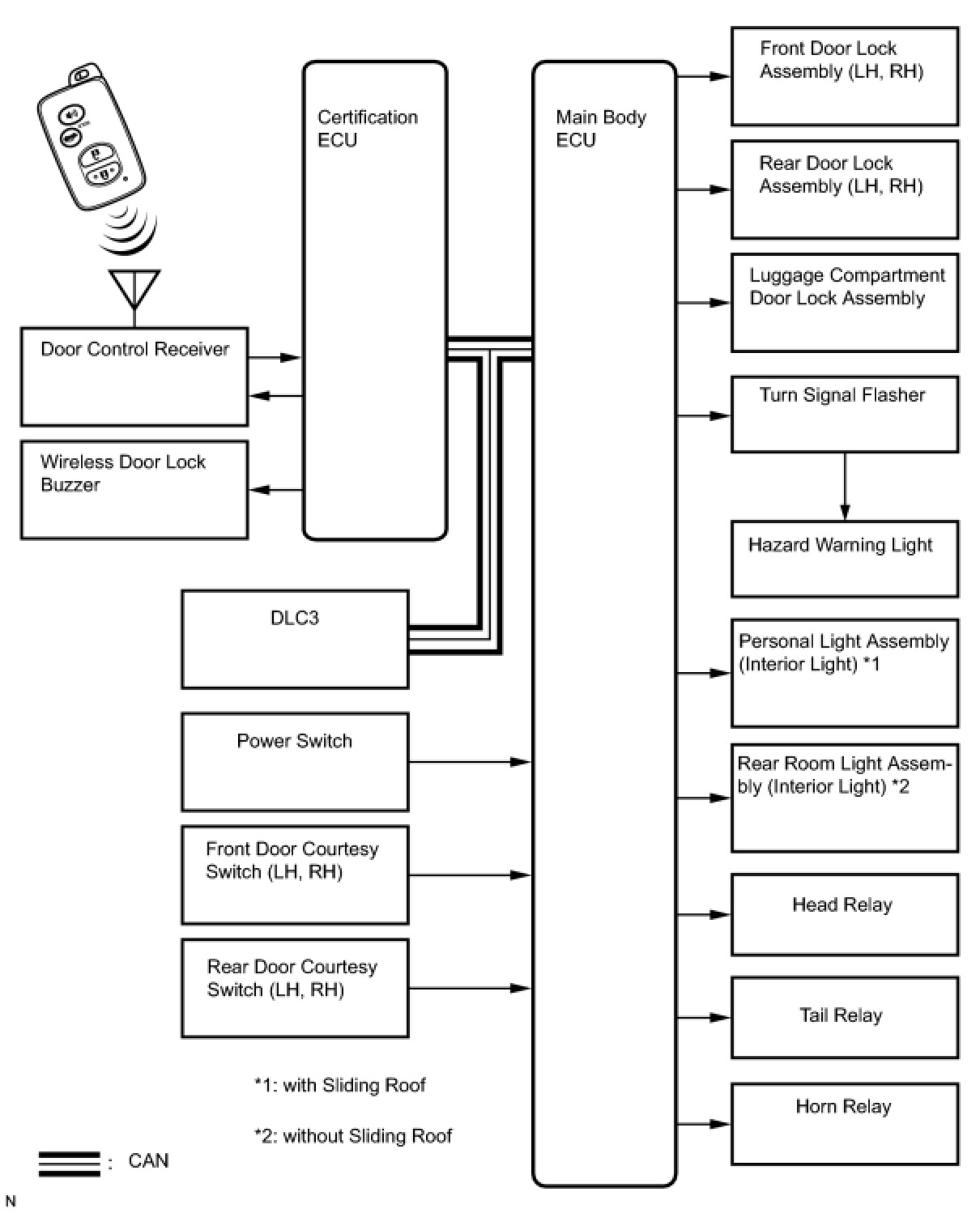 The wireless door lock control system functions to lock and unlock all the doors from a distance. The system is controlled by a hand-held transmitter which sends radio waves to the door control receiver. The certification ECU performs an ID code identification process and engages the door lock control.