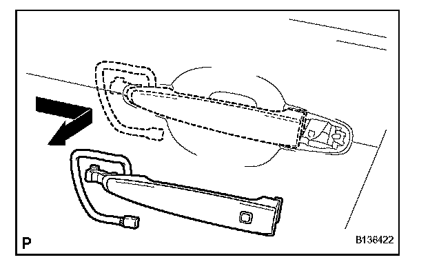 b. Remove the front door outside handle assembly as shown in the illustration.