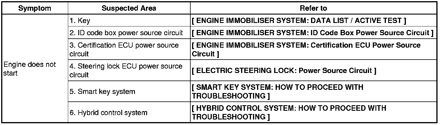 ENGINE IMMOBILISER: ENGINE IMMOBILISER SYSTEM: PROBLEM SYMPTOMS TABLE