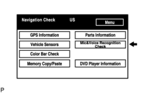 (a) Select "Mic & Voice Recognition Check" on the "Navigation Check" screen to display the "MICROPHONE & VOICE RECOGNITION CHECK" screen.