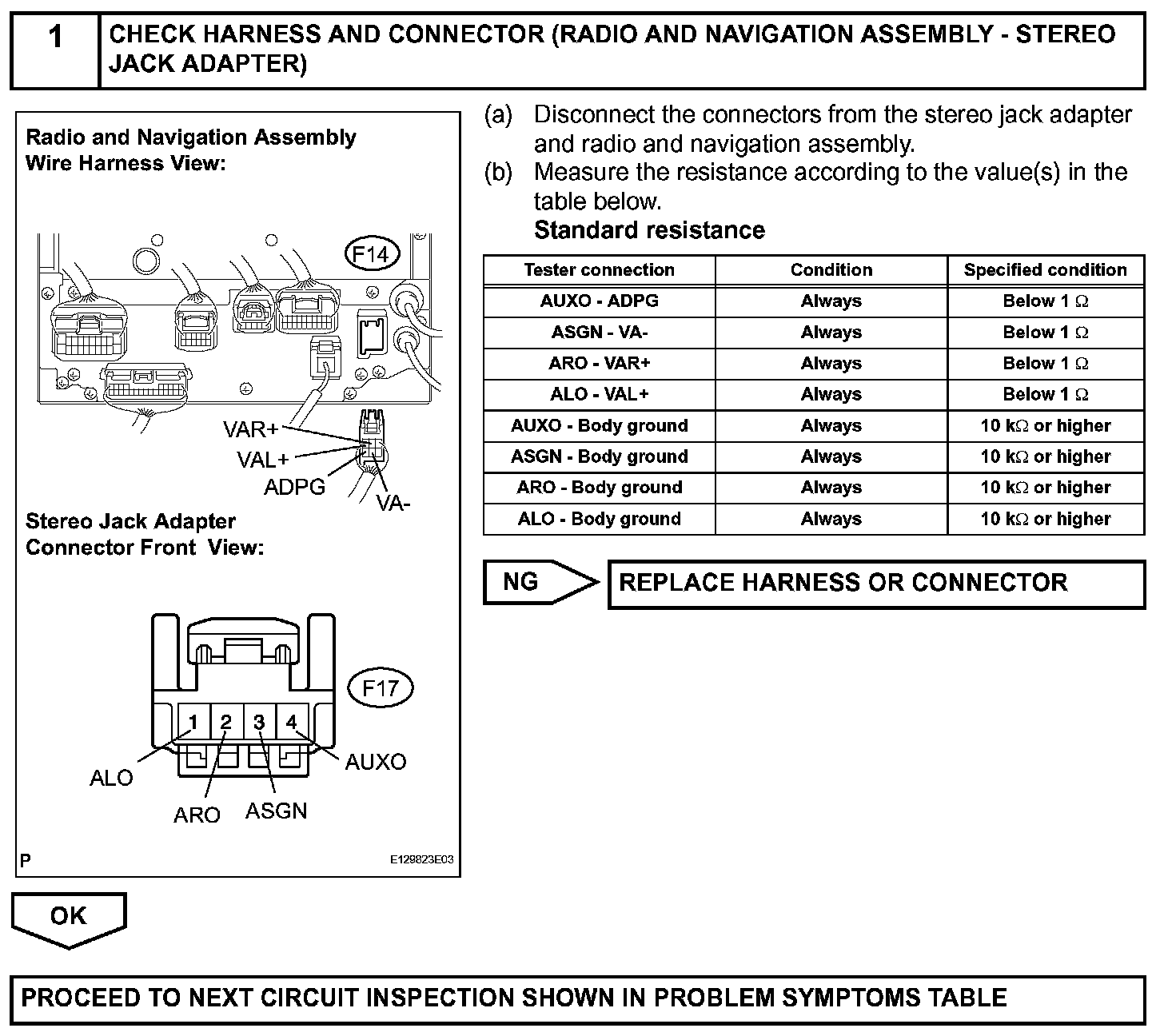 Sound Signal Circuit between Radio and Navigation Assembly and Stereo Jack AdapterDESCRIPTION