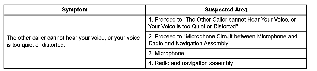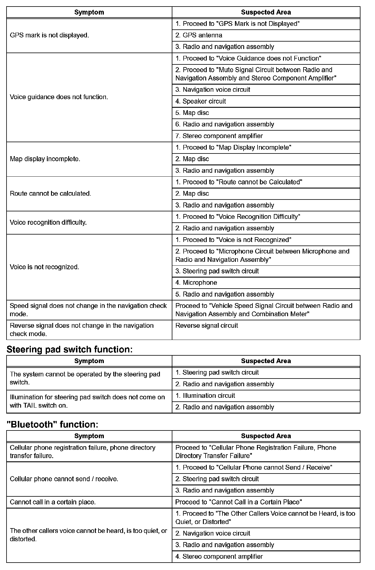 - Before inspecting the suspected areas listed in the table, check the DTCs.