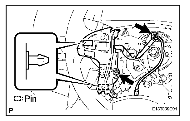 e. Disengage the 2 pins and remove the steering pad switch assembly.
