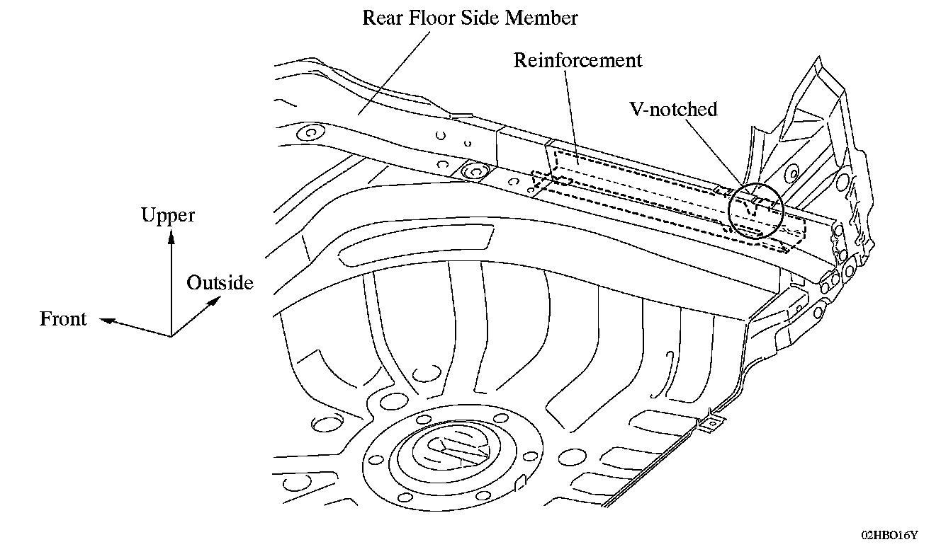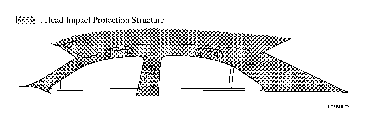 ^ A head impact protection structure is used. With this type of construction, if the occupant's head hits against the roof side rail or pillar due to a collision, the inner panels of the roof side rail, roof area and pillar collapse to help reduce the impact.