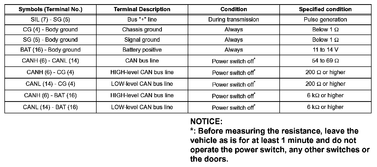 If the result is not as specified, the DLC3 may have a malfunction. Repair or replace the harness and connector.