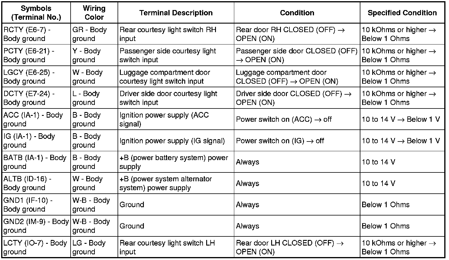 DOOR LOCK: WIRELESS DOOR LOCK CONTROL SYSTEM: TERMINALS OF ECU