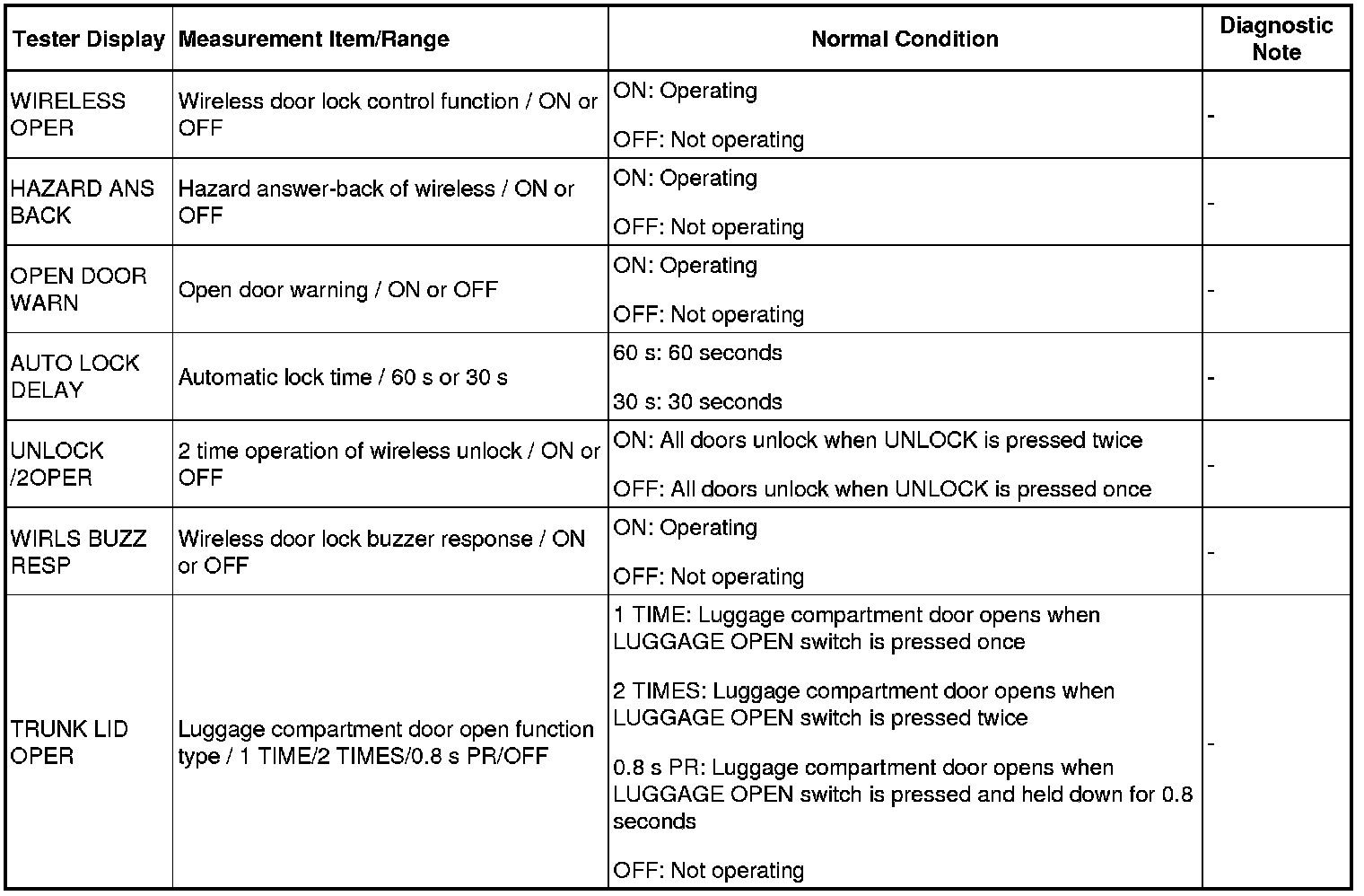 DOOR LOCK: WIRELESS DOOR LOCK CONTROL SYSTEM: DATA LIST / ACTIVE TEST