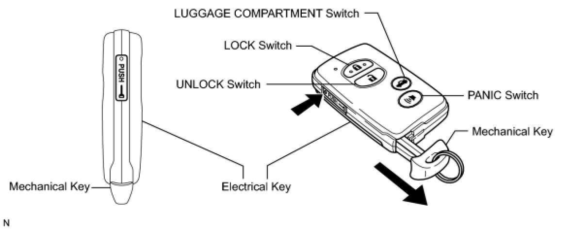 Push the LOCK/UNLOCK/PANIC/LUGGAGE COMPARTMENT switch on the electrical key to operate each function. For details, Operation Check.