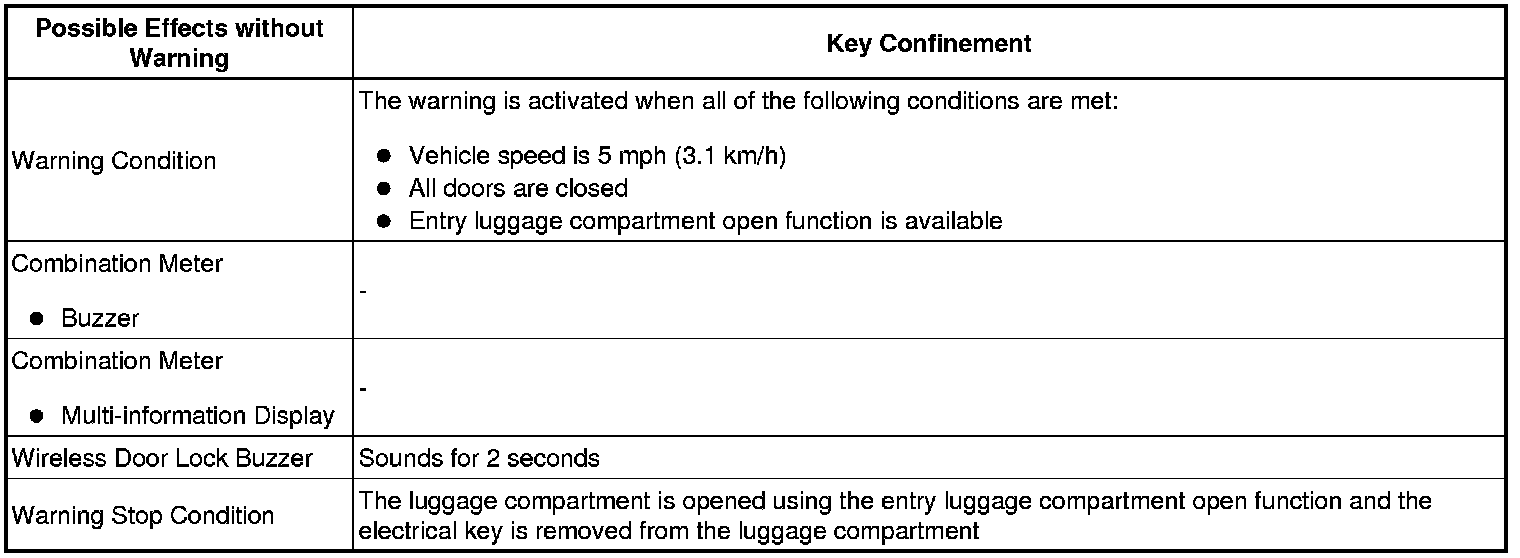 (b) If the luggage compartment is closed with the electrical key in it, the alarm will sound and the luggage compartment can be opened only when all the doors are locked in order to prevent electrical key confinement in the vehicle.