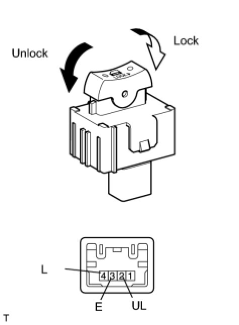 The main body ECU constantly applies voltage to terminal 2 (driver side) or 4 (passenger side) of the door control switch via terminal L1. When the door control switch is operated to lock all doors, current flows from terminal L1 to terminal 2 (driver side) or 4 (passenger side). The main body ECU determines that this is door lock request signal input.