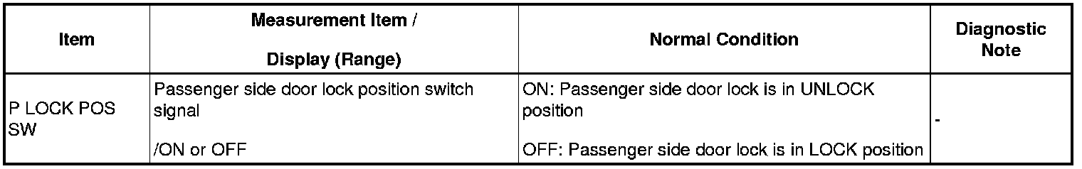Front Passenger Side Door UNLOCK Detection Switch Circuit