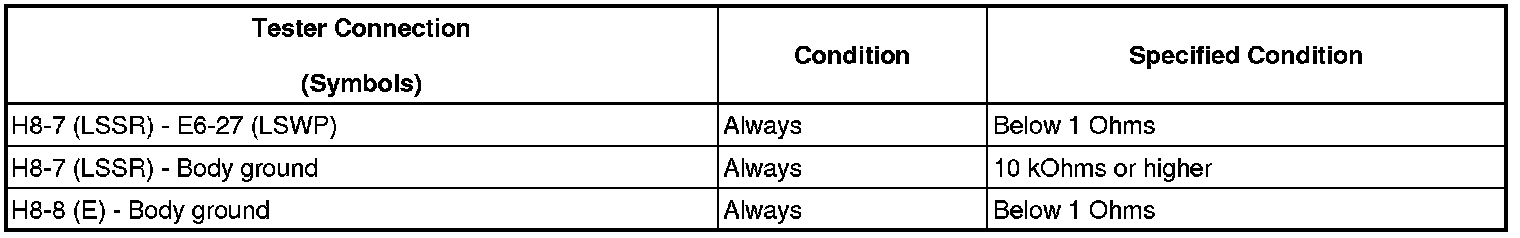 The main body ECU applies voltage to the door unlock detection switch via terminal LSWP. When the door unlock detection switch is on (there is continuity between the switch terminals), a lock state signal is input to the ECU. When the switch is off (there is no continuity between the switch terminals), an unlock state signal is input.