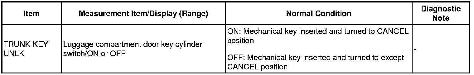 DOOR LOCK: POWER DOOR LOCK CONTROL SYSTEM: Luggage Compartment Door Key Cylinder Switch Circuit