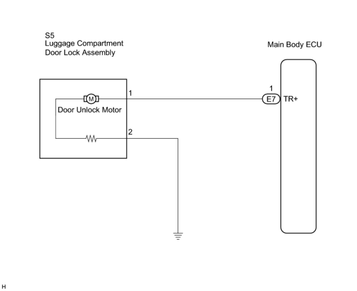 The main body ECU receives a luggage compartment door unlock signal from the luggage compartment door lock cylinder or electrical key switch and operates the door unlock motor.
