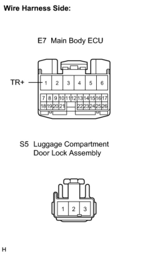 3. CHECK WIRE HARNESS (LUGGAGE COMPARTMENT DOOR LOCK - MAIN BODY ECU)
