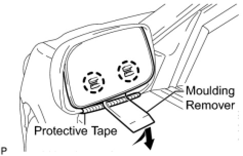 (b) Using a moulding remover, disengage the 2 claws at the lower part of the outer rear view mirror, and remove the outer rear view mirror glass.