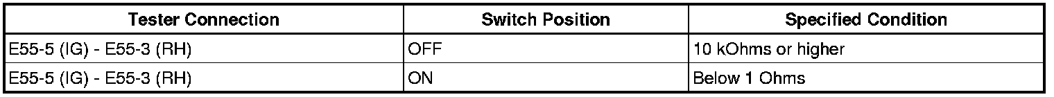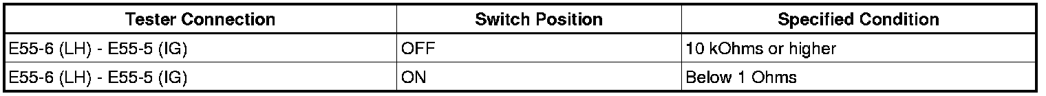 If the result is not as specified, replace the switch.