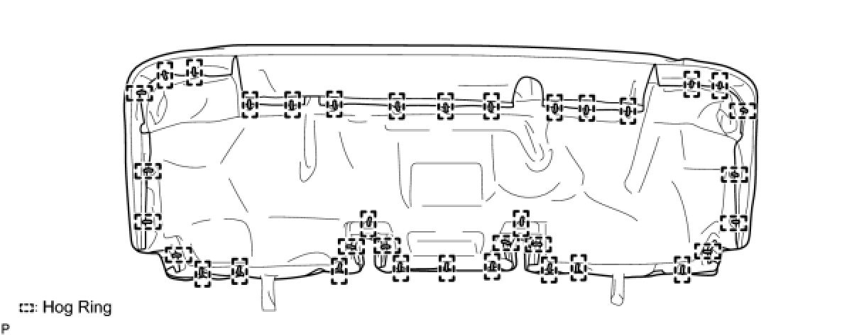 (b) Remove the 16 hog rings and rear bench type seat cushion cover.