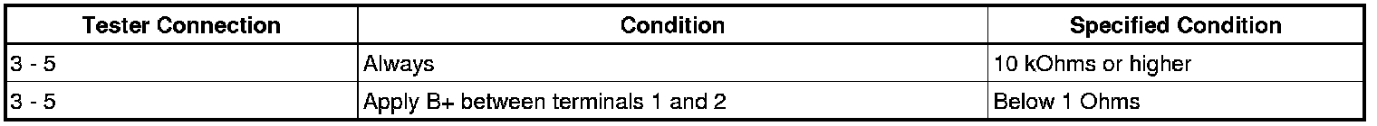 If the value is not as specified, replace the ABS MOTOR relay.