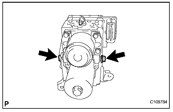 NOTE: Do not remove the hole plug before connecting the brake line because a new brake actuator assembly is filled with brake fluid.