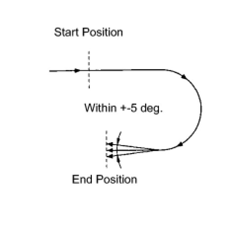 - Make a 180° turn. At the end of the turn, the direction of the vehicle should be within 180° +-5° of its start position.